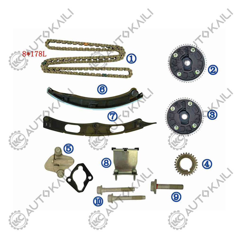 Nuestros kits de reparación incluyen cadenas de distribución, fasores de árbol de levas (VVT), piñones de árbol de levas, piñones de cigüeñal, guías de distribución, tensores y otras piezas de distribución. Estos se clasifican en paquetes de reparación completos, paquetes de reparación de montaje grande y paquetes de reparación de montaje pequeño: