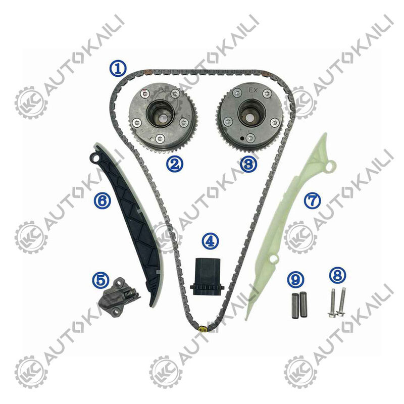 Nuestros kits de reparación incluyen cadenas de cronometraje, fases de árbol de levas (VVT), ruedas dentadas de árbol de levas, ruedas dentadas de cigüeñal, rieles de guía de cronometraje, tensores y otras partes de cronometraje.